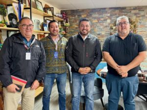 El alcalde de la comuna, Alexis Pineda Ruiz, junto al concejal Víctor Vejar y el delegado de Huiscapi, Alexi Riquelme, sostuvieron una reunión con la