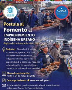 La Corporación Nacional de Desarrollo Indígena (CONADI) ha abierto oficialmente el proceso de postulación al Fomento al Emprendimiento Indígena Urbano 2026 en la Región de