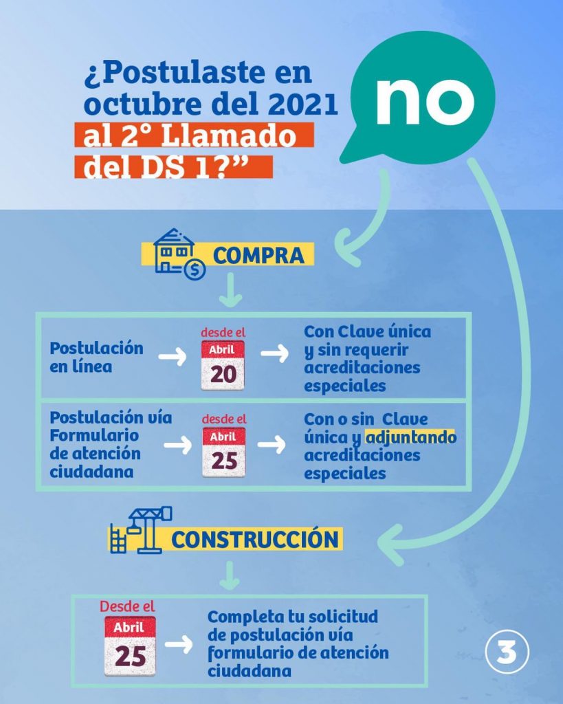 Para compra o construcción de vivienda. Si es primera vez que postulas a construcción en sitio propio y/o necesitas acreditar alguna situación excepcional, podrás completar tu solicitud de postulación vía Formulario de Atención Ciudadana.