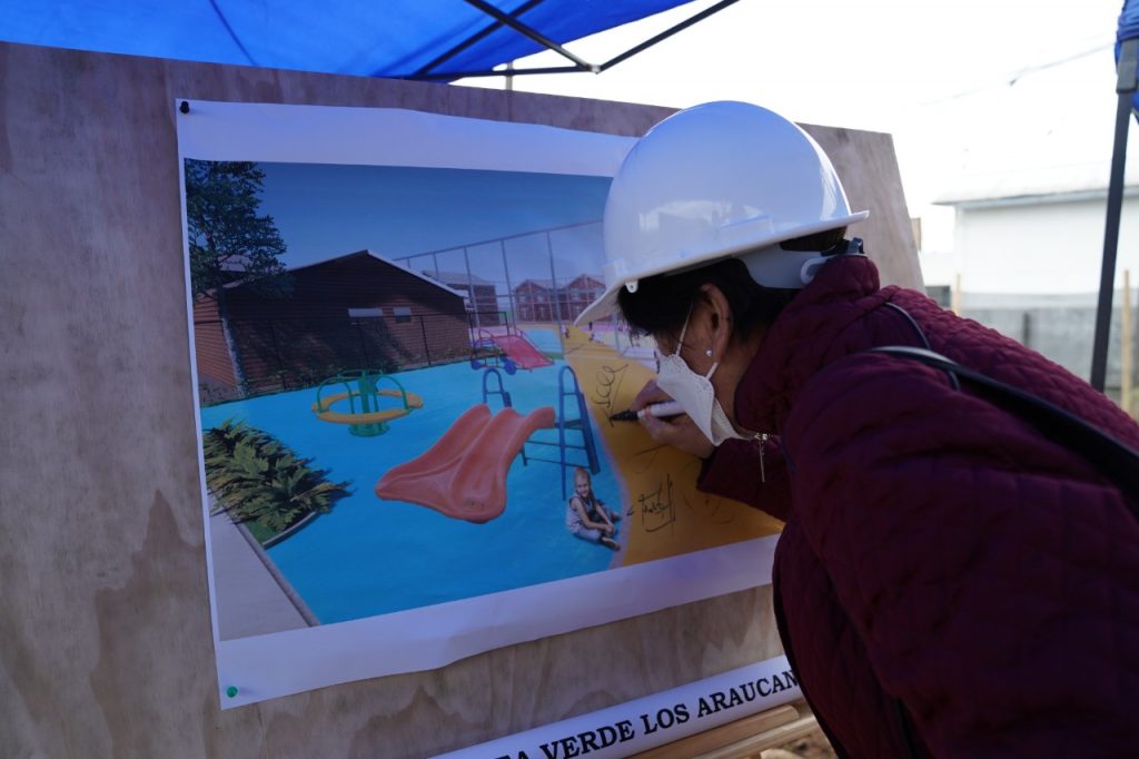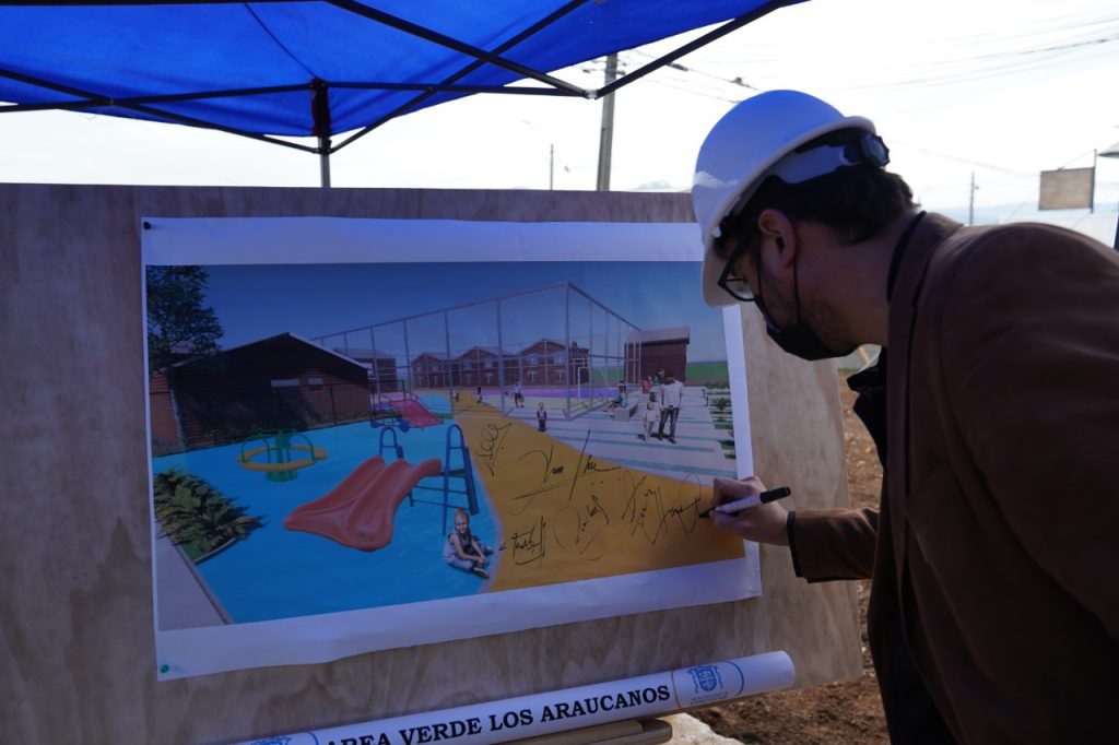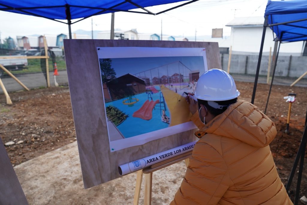 Cabe señalar, que el proyecto “Los Araucanos”, es un área verde que considera una cancha preexistente, que se interviene para reactivar el área, otorgándole colores que se extienden para articular y conectar el proyecto. Esta área verde entrega nueva vida a una zona deteriorada, dotándola de máquinas de ejercicio, paisajismo y nuevos pavimentos.