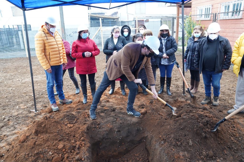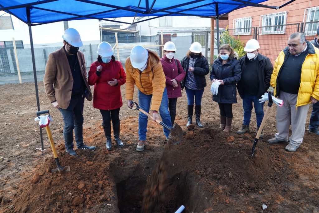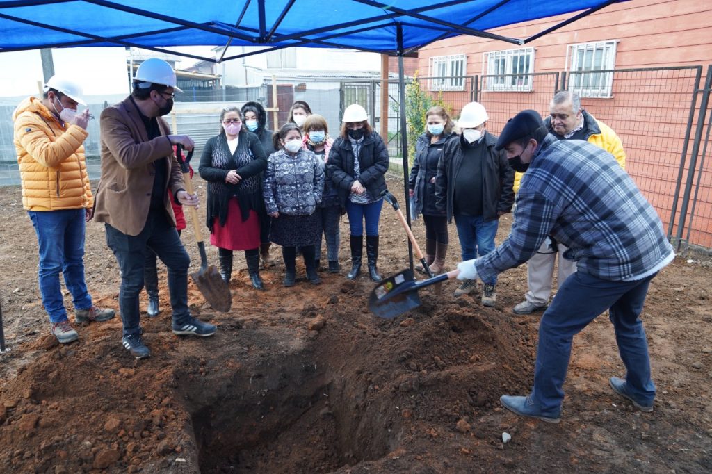 La primera autoridad comunal; Alexis Pineda Ruiz junto a vecinos de Población Los Araucanos, participaron de una ceremonia para la colocación de primera piedra del mejoramiento del área verde y multicancha del sector, proyecto que tiene un monto superior a los $240 millones de pesos, financiados a través del Ministerio de Vivienda.