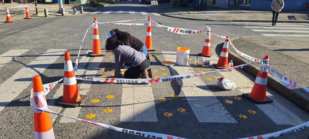 Se inició la demarcación con huellas de perros en los pasos peatonales del centro de la ciudad, con el fin de hacer respetar al automovilista y peatón el cruce para ellos.